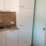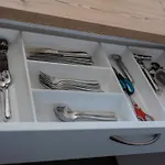 Dispone de nevera, un horno y utensilios de cocina en una cocina completa para el confort diario.